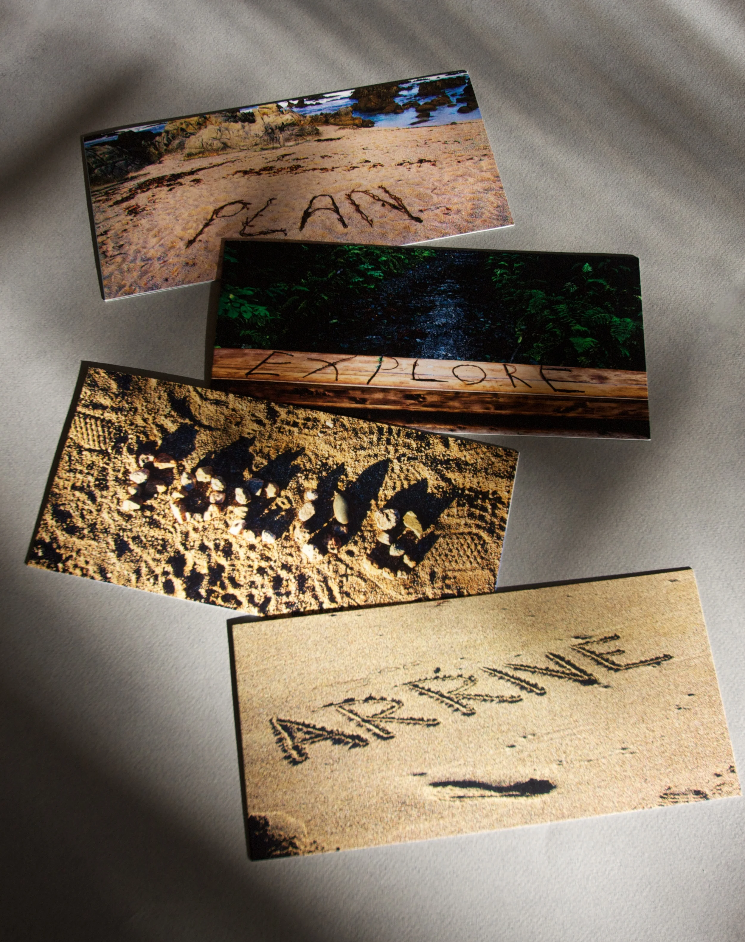 Develop a highly customized four-card campaign highlighting the studio's creative process; the cards could serve as both individual pieces for mailing and a complete set for handing out.